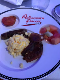 Saturday Dec. 8 was our first day at sea and Anna's 9th birthday. Her mom and brother decorated our door for her! We started off the day in Animator's Palate for the "Character Breakfast" with Vampira, Doc McStuffin and Mickey Mouse.